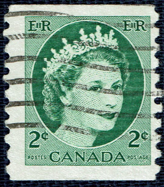 … in 1954. Sc 345. Queen Elizabeth II - Wilding Portrait: Coil Stamps. Design: Herman Herbert Schwarz. Photograph: Dorothy Wilding.