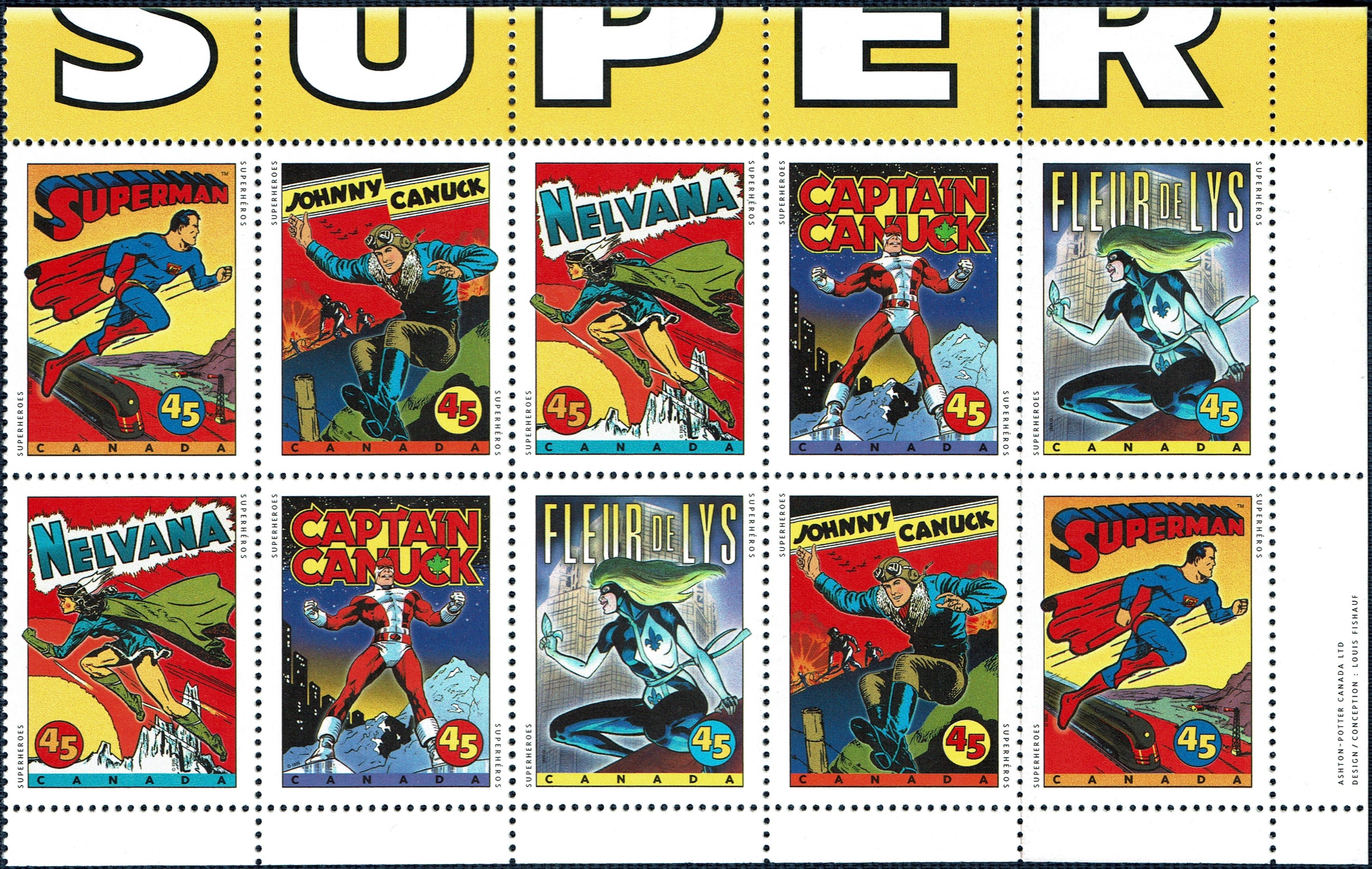 … in 1995. Sc 1583b booklet pane of 10. Comic Book Superheroes. Design: Louis Fishauf